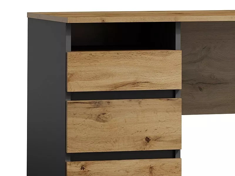 Letisztult, modern íróasztal kompakt méretben, mindennapi munkához és tanuláshoz. A laminált lap és a fekete fémszerkezet tartós, könnyen tisztítható felületet ad.